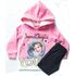 Long-sleeved hooded sweatshirt with pockets, front print and inner fur combined with plain pants.