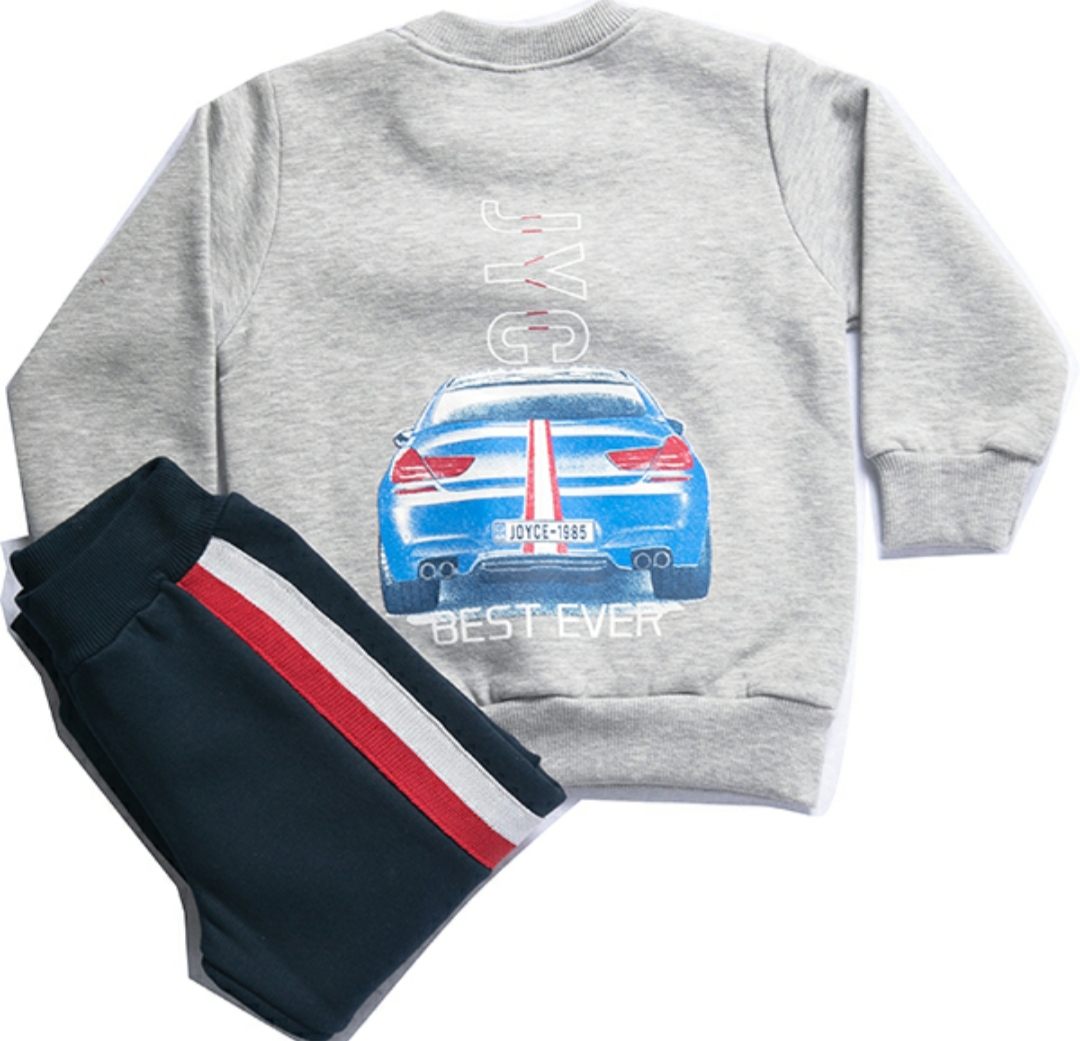 Sweatshirt blouse set with print front and back, combined with long sweatshirt pants.